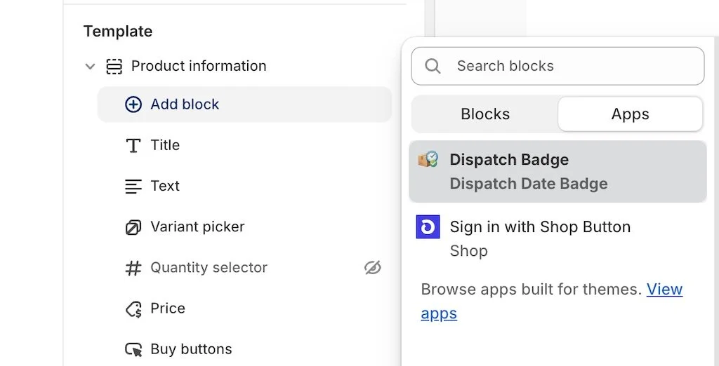 Add the "Dispatch Badge" app block to your product template